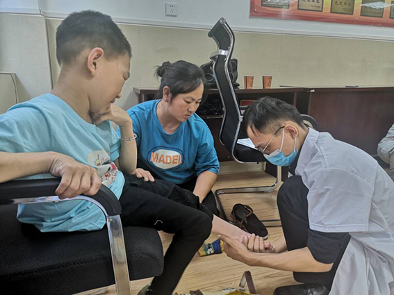 活動現(xiàn)場,技術人員分別為14名殘疾兒童假肢矯形器取模和兒童輔助器具適配。殘疾兒童假肢矯形器裝配和輔助器具適配是貧困殘疾人康復的重要內容之一。今年,我縣殘疾兒童假肢矯形器裝配任務是9人,輔助器具適配任務是7人,實際完成殘疾兒童假肢矯形器裝配14人,輔助器具適配14人,超額完成民生工程任務。
