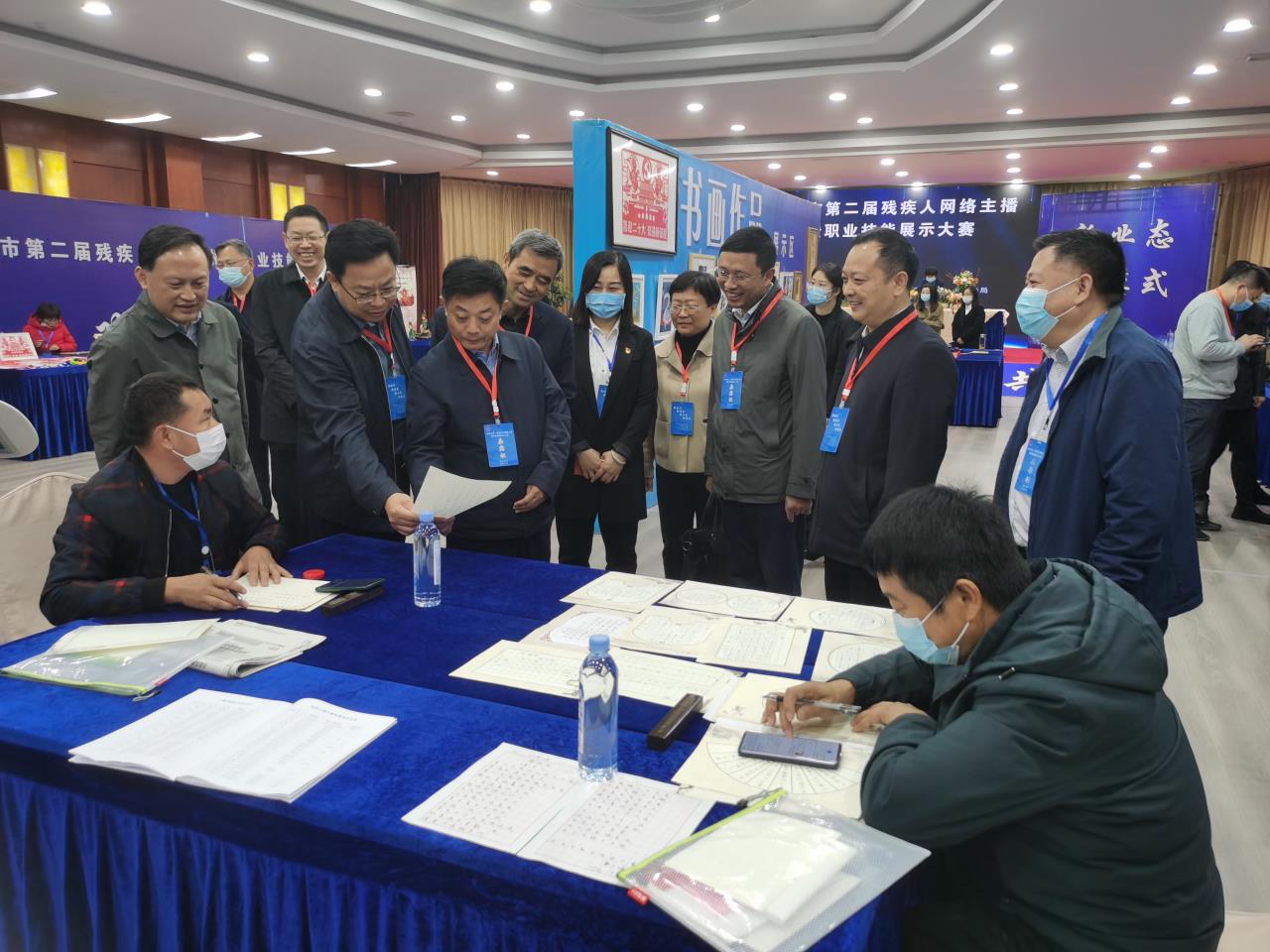 市人大常委會副主任姜奎堂、市政協(xié)副主席徐巖,省殘聯(lián)教就處三級調(diào)研員柯星、省特教中專學(xué)校副校長湯俊峰、市政府副秘書長王良宜,市殘聯(lián)、市委網(wǎng)信辦、市財政局、市人力資源社會保障局、市商務(wù)局領(lǐng)導(dǎo),各縣(市、區(qū))殘聯(lián)負責(zé)同志及參賽選手180余人出席14日上午開幕式,柯星代表省殘聯(lián)致辭,張馳致歡迎詞,姜奎堂宣布大賽開幕。開幕式與會領(lǐng)導(dǎo)及嘉賓觀摩了職業(yè)技能展示大賽和網(wǎng)絡(luò)主播大賽。