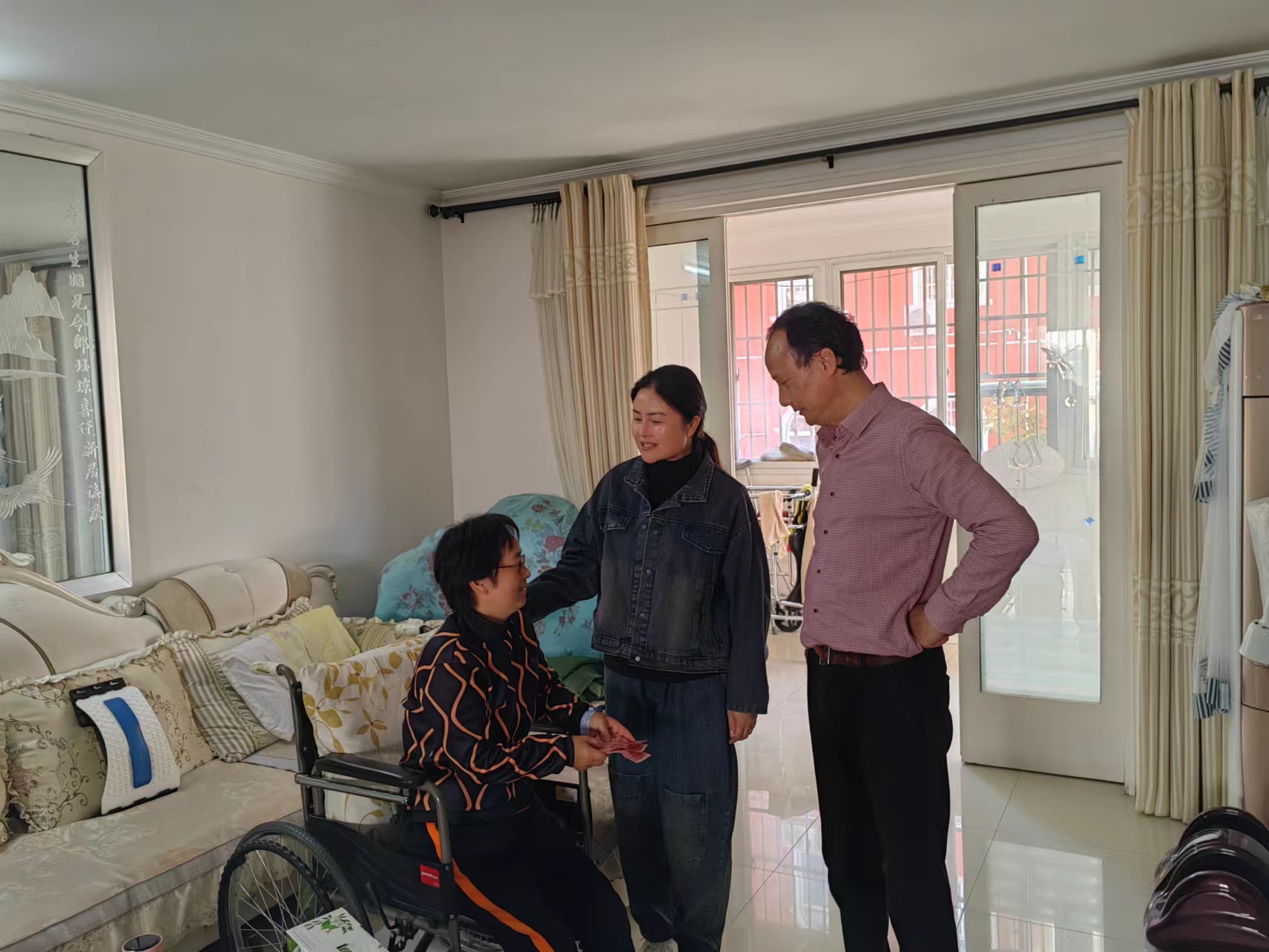 李平一行與殘疾人及其親屬親切交談,了解其家庭生產(chǎn)和生活情況,并為兩戶殘疾人送上1200元慰問金。鼓勵他們要身殘志不殘,克服殘廢之患,樹立信心,積極向上,讓自己的人生綻放得更加美麗多彩。