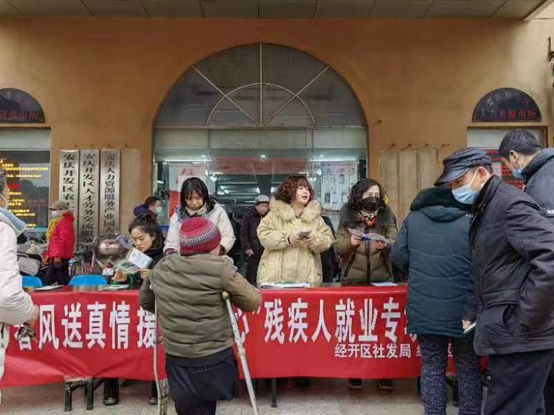 根據(jù)安慶市殘聯(lián)統(tǒng)一部署,2月8日上午,經(jīng)開區(qū)社發(fā)局聯(lián)合區(qū)人社局在經(jīng)開區(qū)人力資源市場,開展了以“春風(fēng)送真情,援助暖民心”為主題的就業(yè)援助月專場招聘會,宣傳殘疾人就業(yè)創(chuàng)業(yè)支持政策,推介就業(yè)創(chuàng)業(yè)項目,幫助各類就業(yè)困難殘疾人實現(xiàn)就業(yè)愿望,讓殘疾人感受到政府的溫暖關(guān)懷。