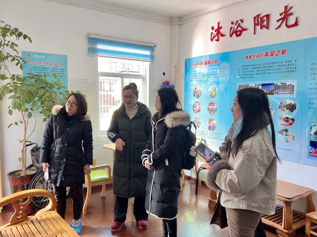 中國(guó)慧靈智障人士服務(wù)機(jī)構(gòu)總部一行在沐陽之家黨支部書記張玲的陪同下參觀了中心各個(gè)功能分區(qū),詳細(xì)了解受訓(xùn)兒童的康復(fù)教育生活等情況,并就大齡殘障青年就業(yè)培訓(xùn)、托養(yǎng)等方面進(jìn)行詳細(xì)交流。
