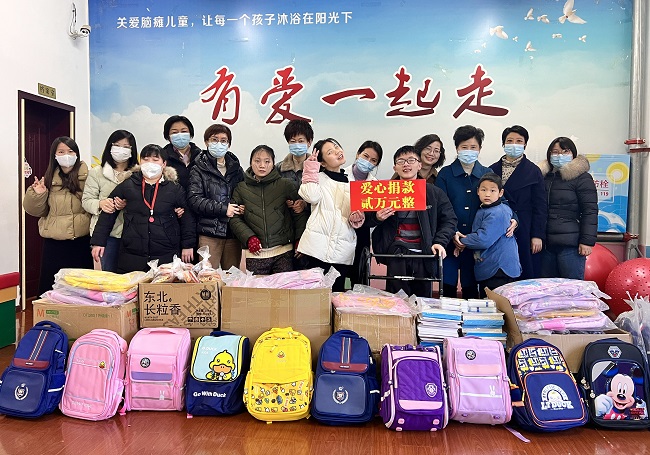 2月22日上午,安慶市政協(xié)副秘書長吳曉藝、人口和資源環(huán)境委員會主任高峽、社會和法治委員會主任寧惠、文化文史和學習委員會主任陳亞玲及市政協(xié)機關等同志一行來到沐陽之家殘疾兒童康復中心,看望慰問在訓腦癱兒童,并為他們送來了價值7000元的書包、文具、食品等慰問品(食品由市政協(xié)個人善款購買)。市政協(xié)委員、岳西縣徽宏茶業(yè)開發(fā)有限公司經理林麗霞捐助善款2萬元。
