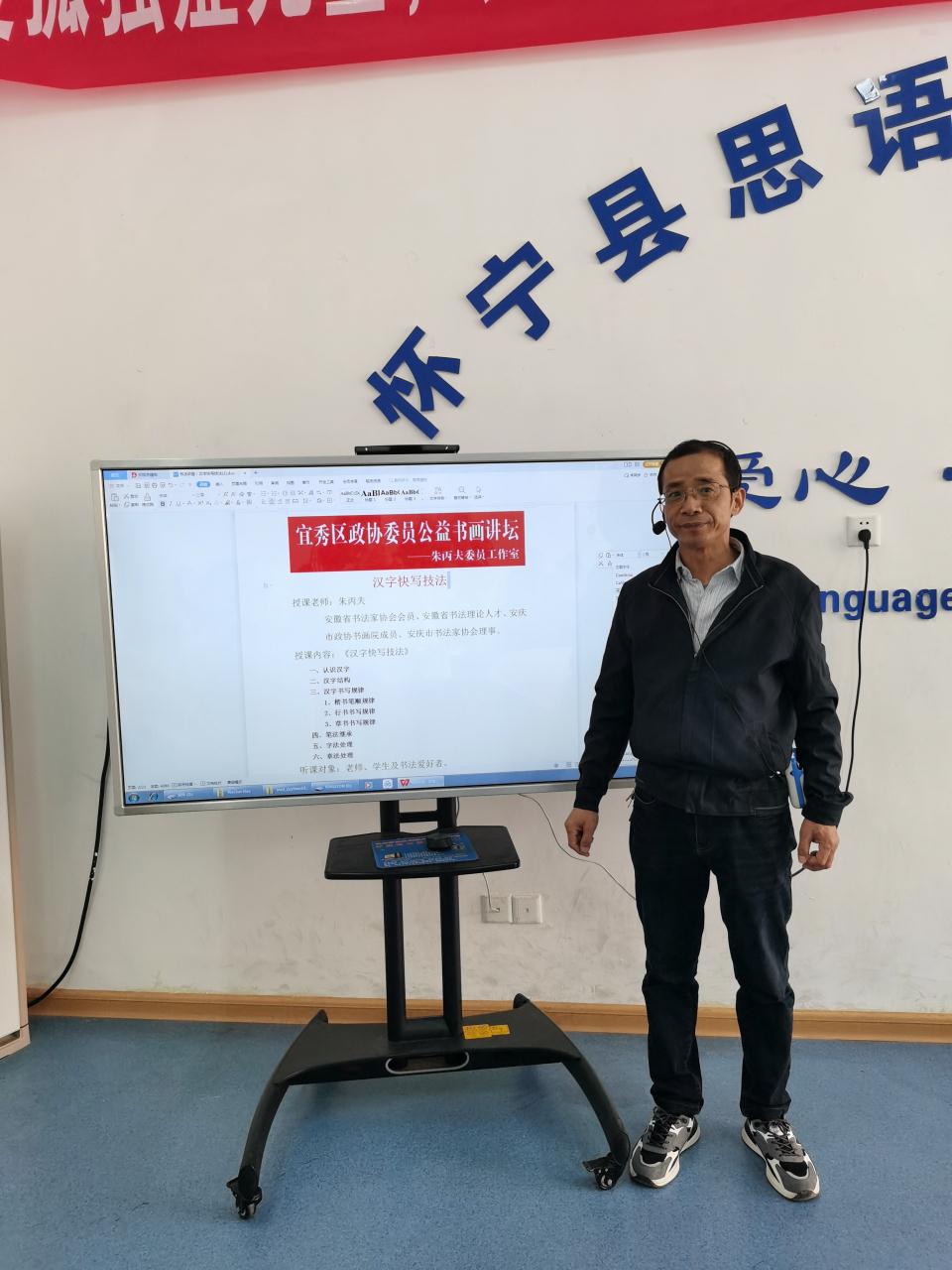 3月31日,第16個“世界孤獨癥日”來臨之際,應(yīng)懷寧思語殘疾兒童康復(fù)中心曹新華主任邀請,朱丙夫委員工作室為該康復(fù)中心全體師生家長開展公益書法講壇。