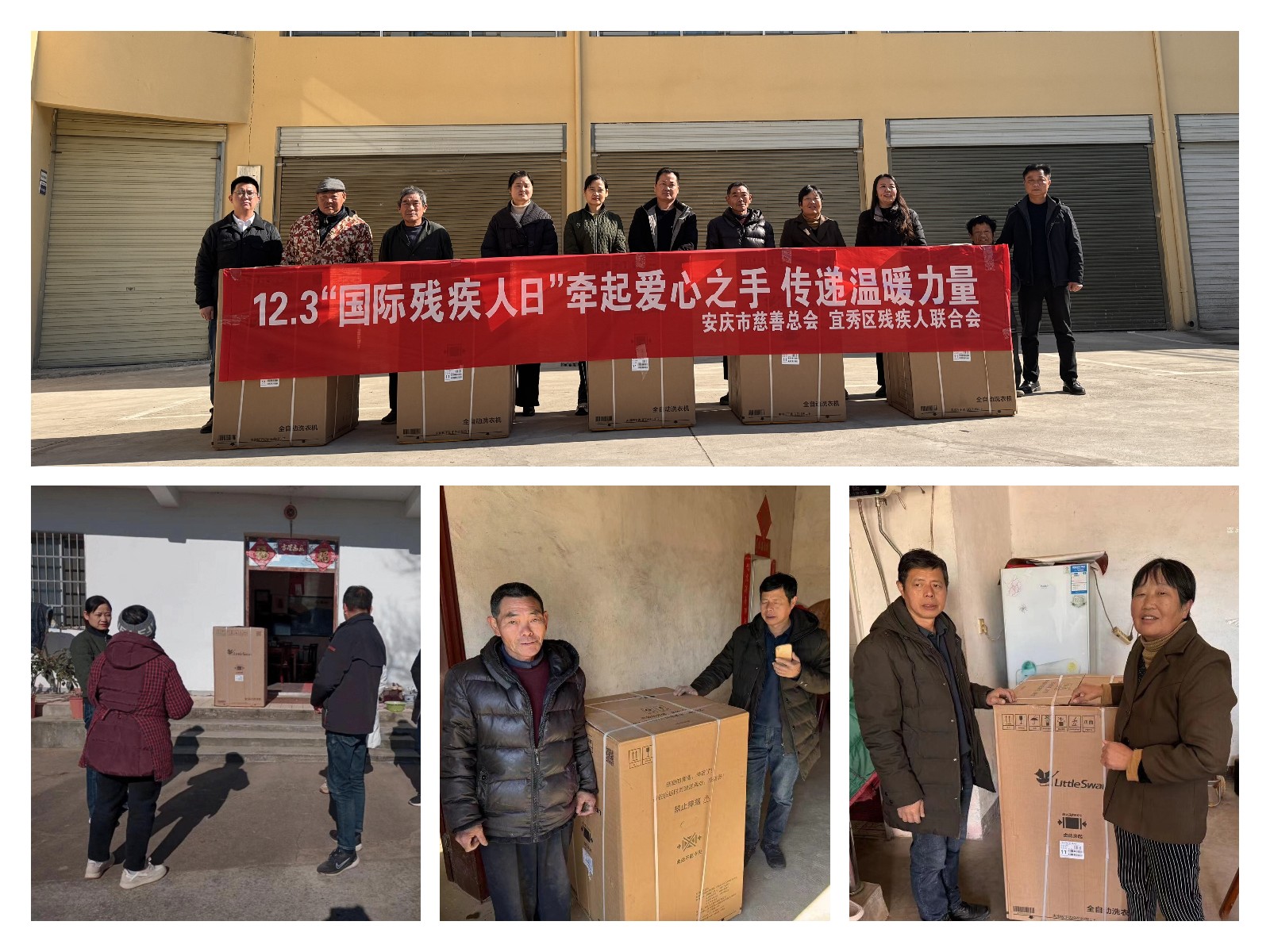 在國際殘疾人日來臨之即,安慶市慈善總會(huì)、宜秀區(qū)殘聯(lián)聯(lián)合開展12.3“國際殘疾人日”·牽起愛心之手,傳遞溫暖力量捐贈(zèng)洗衣機(jī)活動(dòng),讓6個(gè)殘疾人家庭遠(yuǎn)離了手洗衣服的日子。