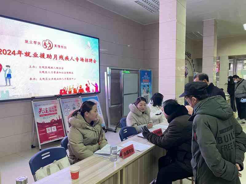 為進一步促進我區(qū)殘疾人就業(yè)創(chuàng)業(yè),幫助有勞動能力和就業(yè)愿望的殘疾人實現(xiàn)就業(yè),切實為殘疾人和用工單位雙向需求提供精準服務,1月26日上午,由大觀區(qū)殘聯(lián)、大觀區(qū)人社局主辦,大觀區(qū)公共就業(yè)和人才服務中心承辦的2024年大觀區(qū)就業(yè)援助月殘疾人專場招聘會暨政策宣傳活動在區(qū)公共就業(yè)和人才服務中心舉行。