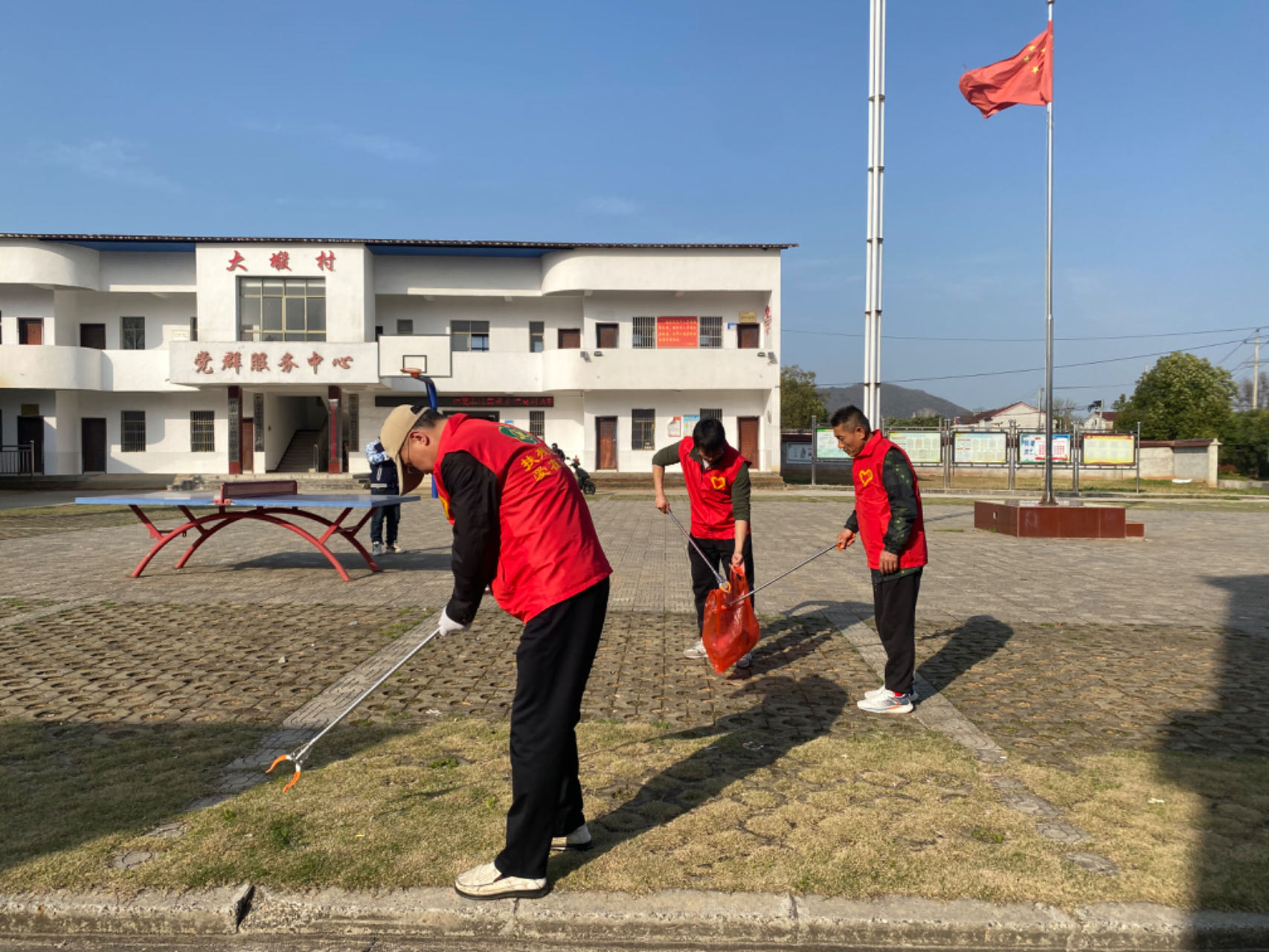 圖為助殘志愿者在大塅村開(kāi)展村莊清潔行動(dòng)
