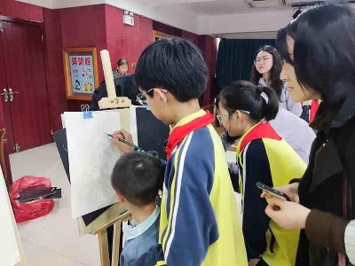 圖為大觀區(qū)公園小學(xué)學(xué)生手把手指導(dǎo)康復(fù)中心在訓(xùn)孤獨(dú)癥兒童繪畫(huà)