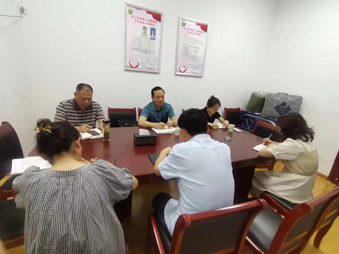 圖為督導(dǎo)組聽取迎江區(qū)殘聯(lián)工作匯報