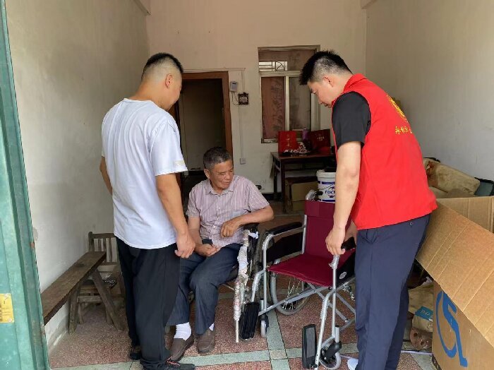 圖為社區(qū)為殘疾人送輔助器具現(xiàn)場