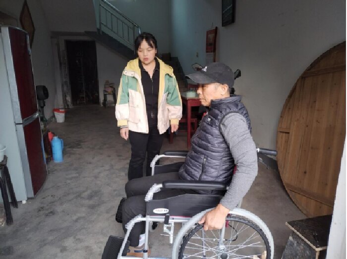 圖為楊橋鎮(zhèn)送輪椅入戶現(xiàn)場(chǎng)