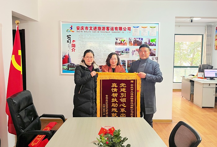 安慶市文進(jìn)旅游客運(yùn)有限公司黨支部書記歐文進(jìn)接過錦旗后表示:“能夠為沐陽之家的孩子們提供幫助,我們安慶市文進(jìn)旅游客運(yùn)有限公司全體員工都深感榮幸。未來,我們將繼續(xù)堅持扶殘助困特殊群體,讓殘障人士感受到社會愛心人士的關(guān)愛和溫暖,同時進(jìn)一步加強(qiáng)黨組織間的溝通協(xié)作,促進(jìn)黨建與公益助殘的深度融合,繼續(xù)攜手并進(jìn),以高質(zhì)量黨建引領(lǐng)雙方在新時代的發(fā)展,實現(xiàn)黨建與業(yè)務(wù)的雙向賦能,共同推動殘疾人事業(yè)全面發(fā)展?!?