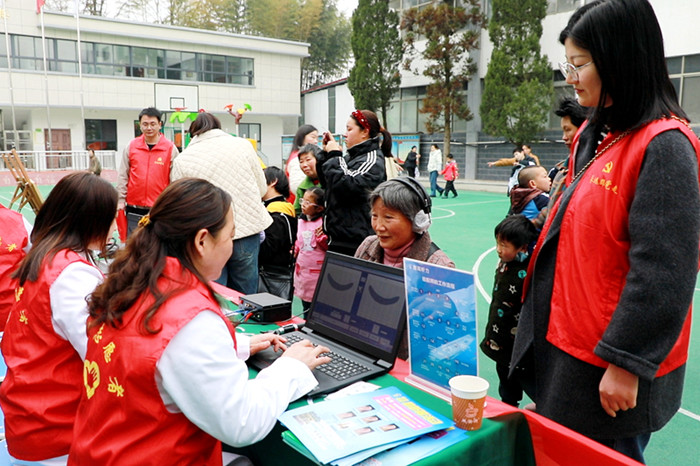 圖為志愿者在岳西縣特殊教育學(xué)校為家長(zhǎng)開(kāi)展聽(tīng)力篩查
