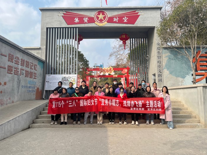 芬芳三月,如歌巾幗。為滿足廣大殘疾群眾的文化精神需求,豐富特殊人群文化生活,積極營造尊重女性和關愛特殊人群的濃厚氛圍,在“三八”女神節(jié)到來之際,宜秀區(qū)殘聯(lián)、區(qū)婦聯(lián)聯(lián)合開展“宜秀巾幗志,殘障亦飛揚”主題活動,組織殘疾婦女參觀游覽集賢時空創(chuàng)意文化園、安慶市博物館。