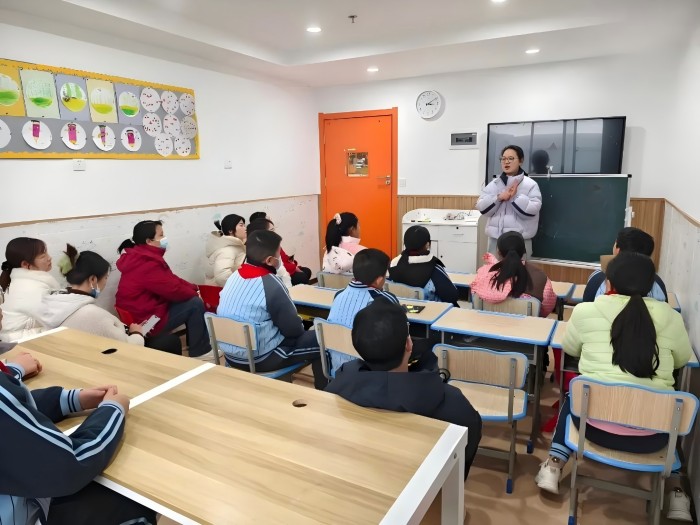 了解不同,共筑未來。課程結(jié)束時,兒童康復(fù)中心王瑩主任向志愿隊詳細介紹了康復(fù)中心情況,她深情地告訴大家,這些在訓(xùn)的孩子們雖然身體上有些與眾不同,但他們和普通孩子一樣,渴望學(xué)習(xí),渴望關(guān)愛,始終懷揣著對生活、學(xué)習(xí)的無限向往,堅持康復(fù)訓(xùn)練。王瑩的話語深深打動了在場的每一個人,菱北中心小學(xué)的同學(xué)們表示,今后要更加用心、竭盡全力地幫助身處困境、心懷陽光的小伙伴,把更多的溫暖與關(guān)懷傳遞給他們。