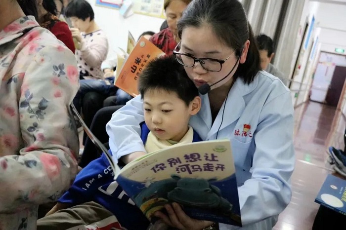 圖為張玲在指導(dǎo)康復(fù)孩子