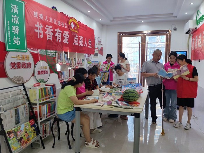 為豐富殘疾人的精神文化生活,7月29日,迎江區(qū)殘聯(lián)在雙井社區(qū)舉辦殘疾人文化進社區(qū)“心聲讀書會”主題活動。轄區(qū)30余名殘疾人朋友參加。