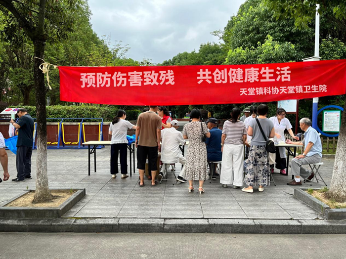 8月25日,天堂鎮(zhèn)科協(xié)聯(lián)合鎮(zhèn)衛(wèi)生院在竹篙尖公園組織開(kāi)展“預(yù)防傷害致殘  共創(chuàng)健康生活”為主題的科普宣傳活動(dòng)。活動(dòng)現(xiàn)場(chǎng),科技志愿者及黨員志愿者通過(guò)懸掛橫幅、設(shè)立咨詢臺(tái)、發(fā)放科普宣傳資料、制作科普宣傳展板、現(xiàn)場(chǎng)咨詢等多種方式,向轄區(qū)居民普及如何做到出生缺陷防控、疾病防控、意外傷害預(yù)防、工傷和職業(yè)病預(yù)防、殘疾康復(fù)等方面知識(shí)。讓大家認(rèn)識(shí)到要加強(qiáng)體育鍛煉,合理膳食,保持良好的心情,養(yǎng)成健康的生活習(xí)慣。此次宣傳活動(dòng)殘疾預(yù)防日宣傳活動(dòng)增強(qiáng)了居民的殘疾預(yù)防意識(shí),提高了居民們對(duì)殘疾預(yù)防和康復(fù)的認(rèn)知,減少和規(guī)避了各類致殘事故的發(fā)生,同時(shí)也消除了部分居民對(duì)精神殘疾人的歧視。