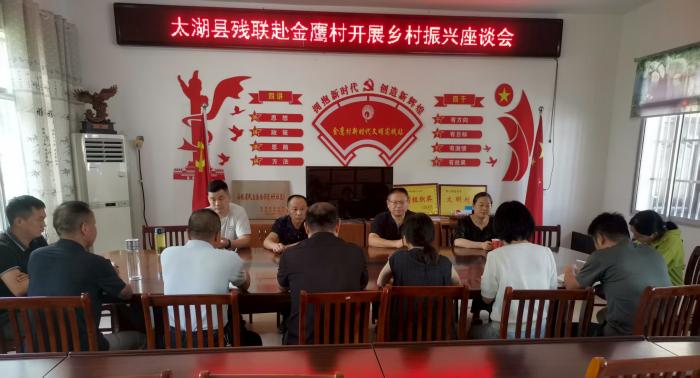 圖為太湖縣殘聯(lián)赴湯泉鄉(xiāng)金鷹村召開鄉(xiāng)村振興座談會(huì)
