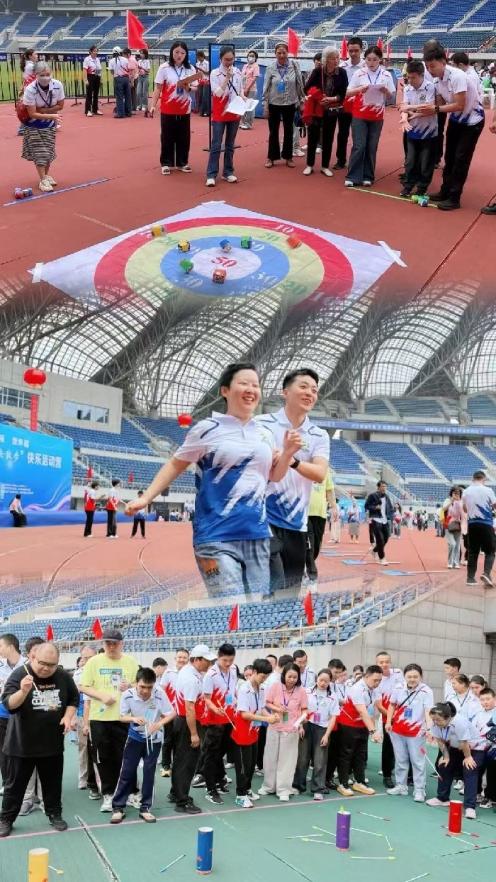 活動現場,多家愛心單位組成的志愿服務隊分別與運動代表隊一一結對,與心智障礙人士親密交流,做好引領帶隊等服務等工作,加油助威聲響徹市體育館上空。在百米接力賽、飛盤投擲、投壺、捶丸、沙包投擲、“公雞下蛋”等趣味運動項目上,隊員們積極參與,配合默契,展現了樂觀向上,自立自強的精神風貌。