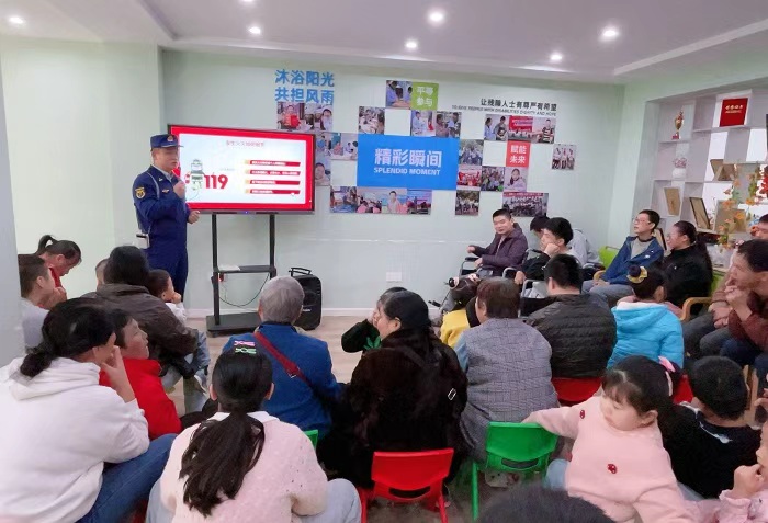 為進一步增強殘障學(xué)員的消防安全意識與自救能力,提升機構(gòu)教職工的應(yīng)急處理水平,10月24日下午,沐陽之家精心組織了一場專業(yè)、實用而又充滿溫度的消防知識講座與實戰(zhàn)演練活動。安慶市消防救援支隊宜城路特勤站副站長孫軒,華中路街道黨工委委員、武裝部長牛剛,皖江社區(qū)黨委副書記杜純等相關(guān)領(lǐng)導(dǎo)參加了此次活動。
