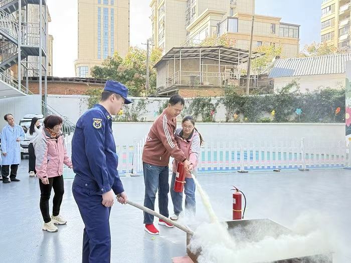 應(yīng)急疏散默契協(xié)作,共筑“生命通道”。隨著消防警報驟然響起,逃生演練正式啟動。老師們迅速到位,一邊安撫學(xué)員情緒,一邊協(xié)助他們用濕毛巾捂住口鼻,彎腰沿墻快速疏散。過程中,一名學(xué)員略顯緊張,老師立刻上前扶住他的肩膀,輕聲鼓勵:“別急,跟我慢慢走。”在全體工作人員細心引導(dǎo)下,所有學(xué)員安全、有序撤離至指定集合點,全程忙而不亂、默契高效。