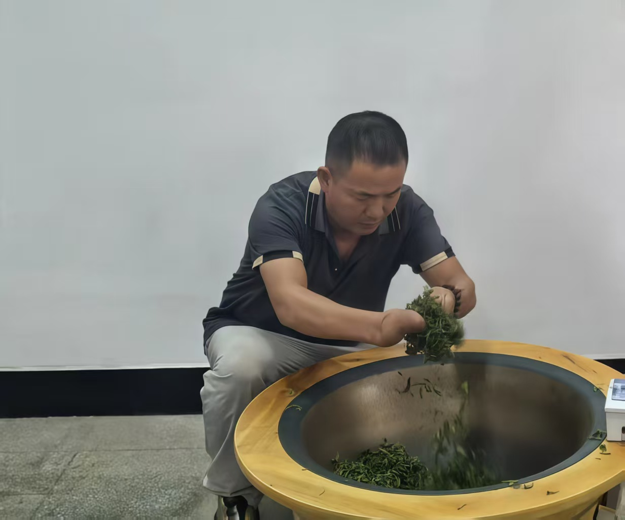 生活的奔波從未消磨葉傳勝向上的渴望,學習的腳步在歲月流轉中從未停歇。當太湖縣殘聯(lián)組織制茶技能培訓的機會降臨,他如渴者得泉,以飽滿的熱情、謙遜的態(tài)度投入其中。從茶葉采摘時對鮮葉嫩度的精準把控,到炒制過程中對火候溫度的微妙拿捏;從揉捻技藝的反復練習,到烘焙環(huán)節(jié)的耐心守候,每一個步驟他都精益求精,每一個細節(jié)他都反復打磨。遇到不懂的問題,他便追著老師虛心請教;操作不熟練,他就利用休息時間反復琢磨。指尖磨出了厚繭,額頭沁滿了汗珠,可他眼中的光芒卻愈發(fā)熾熱。最終,他以優(yōu)異的成績成為培訓班里的優(yōu)秀學員,不僅掌握了一技之長,更收獲了立足社會的底氣與自信。這份勤學好進的精神,讓他在謀生之外,為人生開辟了更廣闊的天地,也讓 “身殘志不殘” 的信念,在技能提升的過程中愈發(fā)堅定。