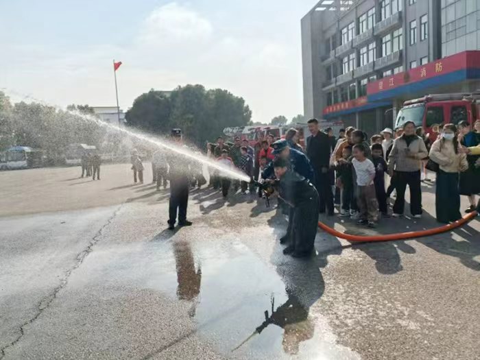 隨后,消防員們?yōu)閷W(xué)生們帶來了精彩的技能展示。如何使用滅火器、如何使用消防水槍。消防員們熟練而又迅速的動作,贏得了學(xué)生們陣陣驚嘆和掌聲。在展示過程中,消防員還邀請了部分學(xué)生上臺,在他們的指導(dǎo)下體驗如何使用消防水槍,雖然消防水槍對于孩子們來說有些沉重,但他們依然興奮不已,努力模仿著消防員的動作,感受這份特殊的責(zé)任與使命。