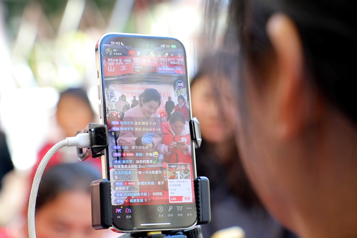 圖為岳西縣新輝殘疾人創(chuàng)業(yè)協(xié)會攜手“大別山王姐”開展的助農(nóng)直播活動火熱開播