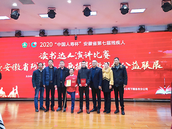 在“國際殘疾人日”到來之際,12月2日至3日,“中國人壽杯”安徽省第七屆殘疾人讀書達(dá)人演講比賽暨安徽省殘疾人書畫攝影微視頻公益聯(lián)展在中國人壽保險(xiǎn)股份有限公司安徽省分公司舉行。省人大常委會(huì)原副主任、省殘疾人福利基金會(huì)理事長宋衛(wèi)平、省殘聯(lián)黨組書記、理事長高莉,省直機(jī)關(guān)工委副書記李友平,中國人壽保險(xiǎn)安徽省分公司主要負(fù)責(zé)人劉鋮等領(lǐng)導(dǎo)出席活動(dòng)并頒獎(jiǎng)。市殘聯(lián)黨組成員、副理事長黃勇、中國人壽保險(xiǎn)安慶分公司副總經(jīng)理王春生帶隊(duì)參賽。此次活動(dòng)首次在各市設(shè)分會(huì)場(chǎng),市殘聯(lián)和中國人壽安慶分公司組織人員在分會(huì)場(chǎng)通過視頻直播觀看了匯報(bào)演講及頒獎(jiǎng)儀式。